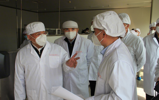 公司副总经理胡运生向韩俊省长一行汇报了公司复工复产、疫情防控情况,并参观固体针剂车间国采产品---利伐沙班生产线。参观过程中,胡总提到公司作为新三板上市企业,国家高新技术企业、吉林省专精特新中小企业、吉林省科技小巨人企业,为了保证产品生产的连续性和稳定性,保证国家集中采购药品持续供应,避免因疫情原因导致国家集采品种断货而带来的无论是公司声誉还是产值经济效益的影响,从3月初开始,公司便安排生产及相关人员驻厂连续生产,并采取封闭运行网格化管理等措施。一季度,公司产值同比增长75%,上半年产值预计同比增长100%。韩俊省长询问了公司生产品种、仿制药一致性评价、销售收入以及新三板上市情况,对公司在稳生产、疫情防控以及在重视科技创新、加大研发投入等方面的成绩给予了肯定,鼓励公司在新品种研发和一致性评价上持续推进。同时要求省政府办公厅要协调相关部门尽快拨付一致性评价补助资金。胡总感谢省、市、开发区以及各部门对公司的支持与帮助,公司接下来会在国家集采产品的研发立项上下大功夫,多上产品,为振兴东北、振兴吉林贡献博大力量!